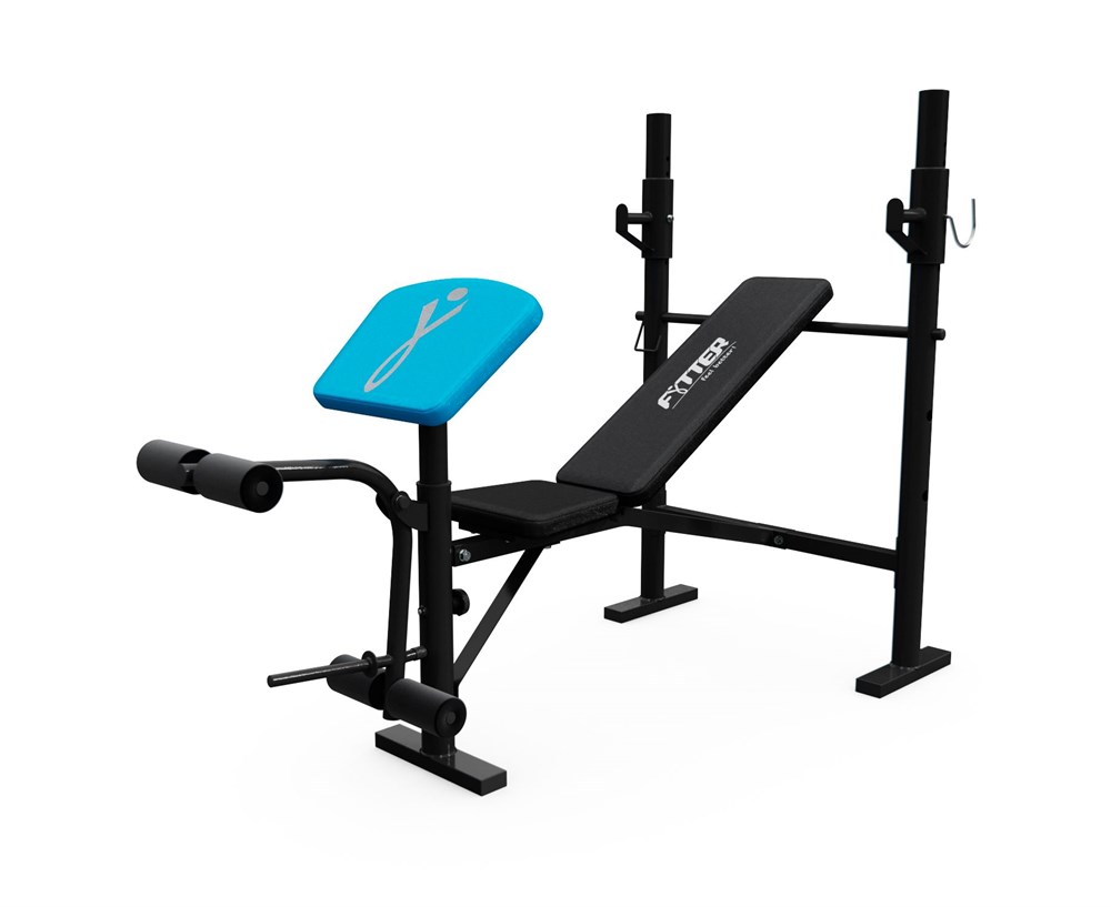 Расстояние между стойками скамьи составляет 63 сантиметра, что позволяет использовать большинство видов штанг. Угол наклона скамьи регулируется, что дает возможность выполнять различные виды жима лежа и другие упражнения.