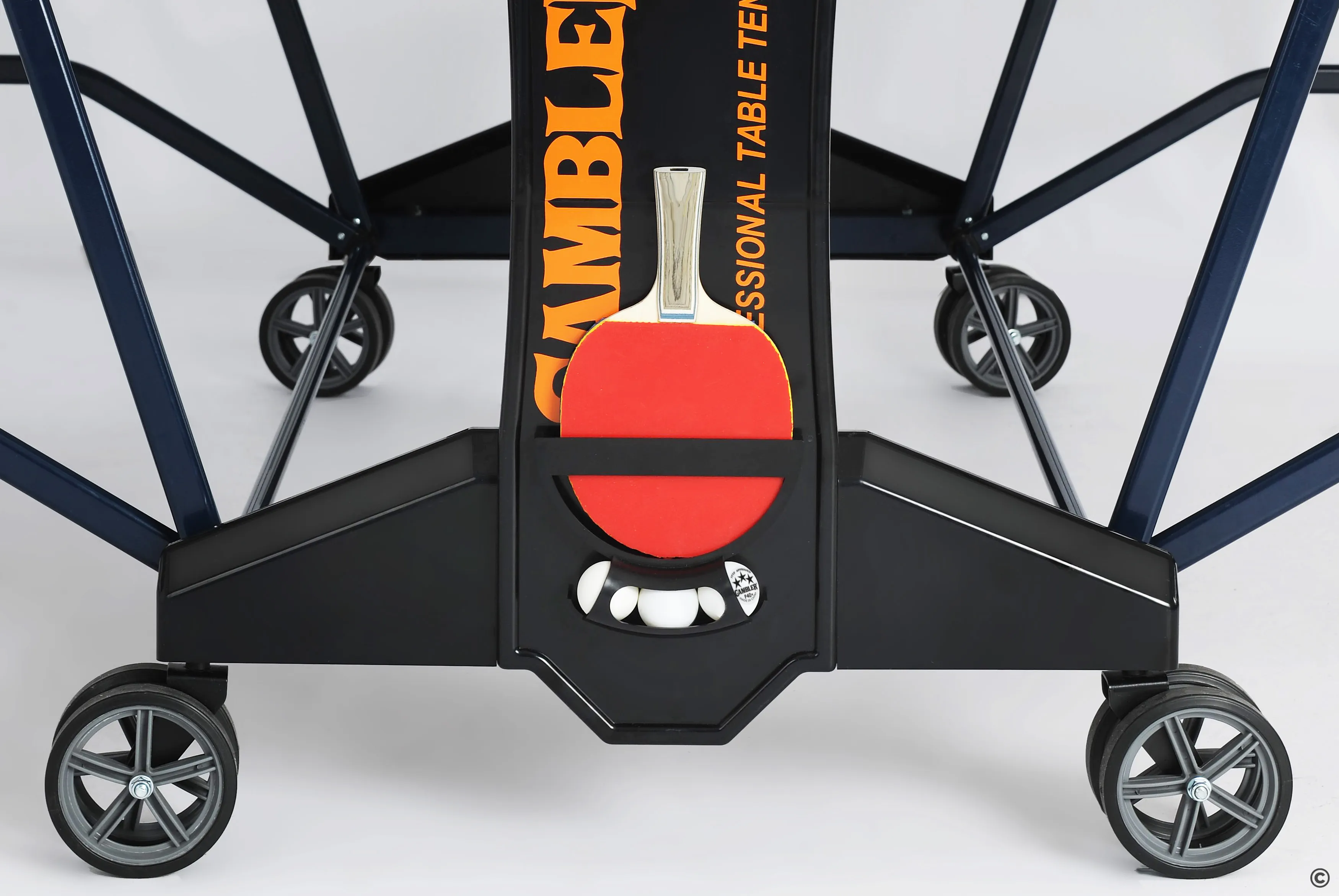 Вне зависимости от рельефа, на котором будет установлен стол, играть на нем будет комфортно. Это возможно благодаря системе регулировки боковых опор. 8 прорезиненных колес обеспечивают плавную маневренность и комфортную транспортировку стола.