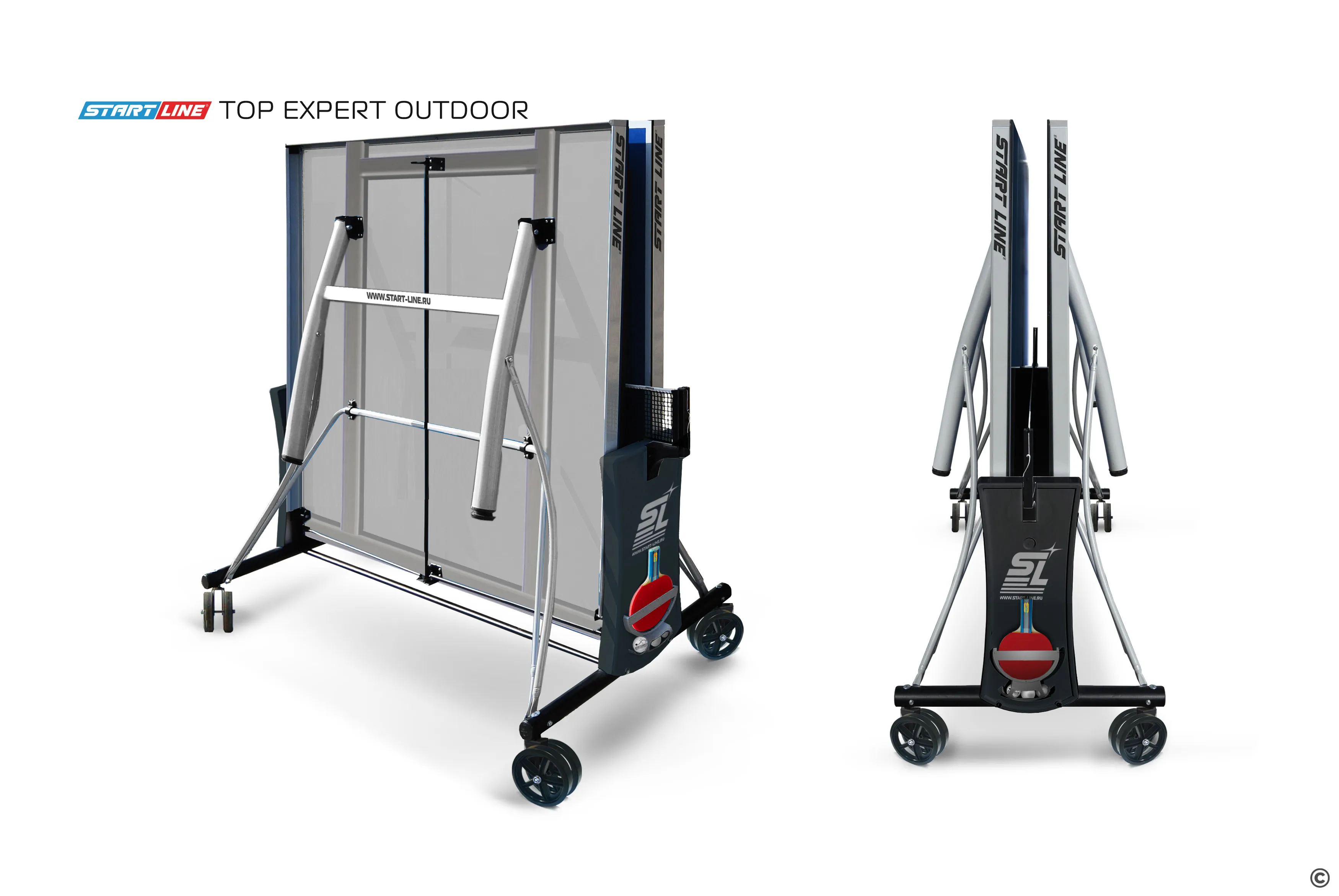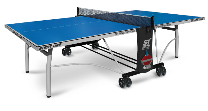 Всепогодная топовая разработка конструкторского бюро Start Line. Размер теннисного стола соответствует международным стандартам. Стол укомплектован столешницей из АКП панели 6 мм. Уникальная система складывания — собственная уникальная разработка Start Line – предусматривает усовершенствованный механизм: специальные фиксаторы позволяют закреплять положение стола как в разложенном, так и в сложенном виде. Регулируемая высота боковых опор дает возможность установить стол на неровную поверхность. Благодаря сдвоенным обрезиненным маневровым колесам теннисный стол легко перемещать. В боковых накладках имеется пенал для удобного хранения мячей и ракеток.