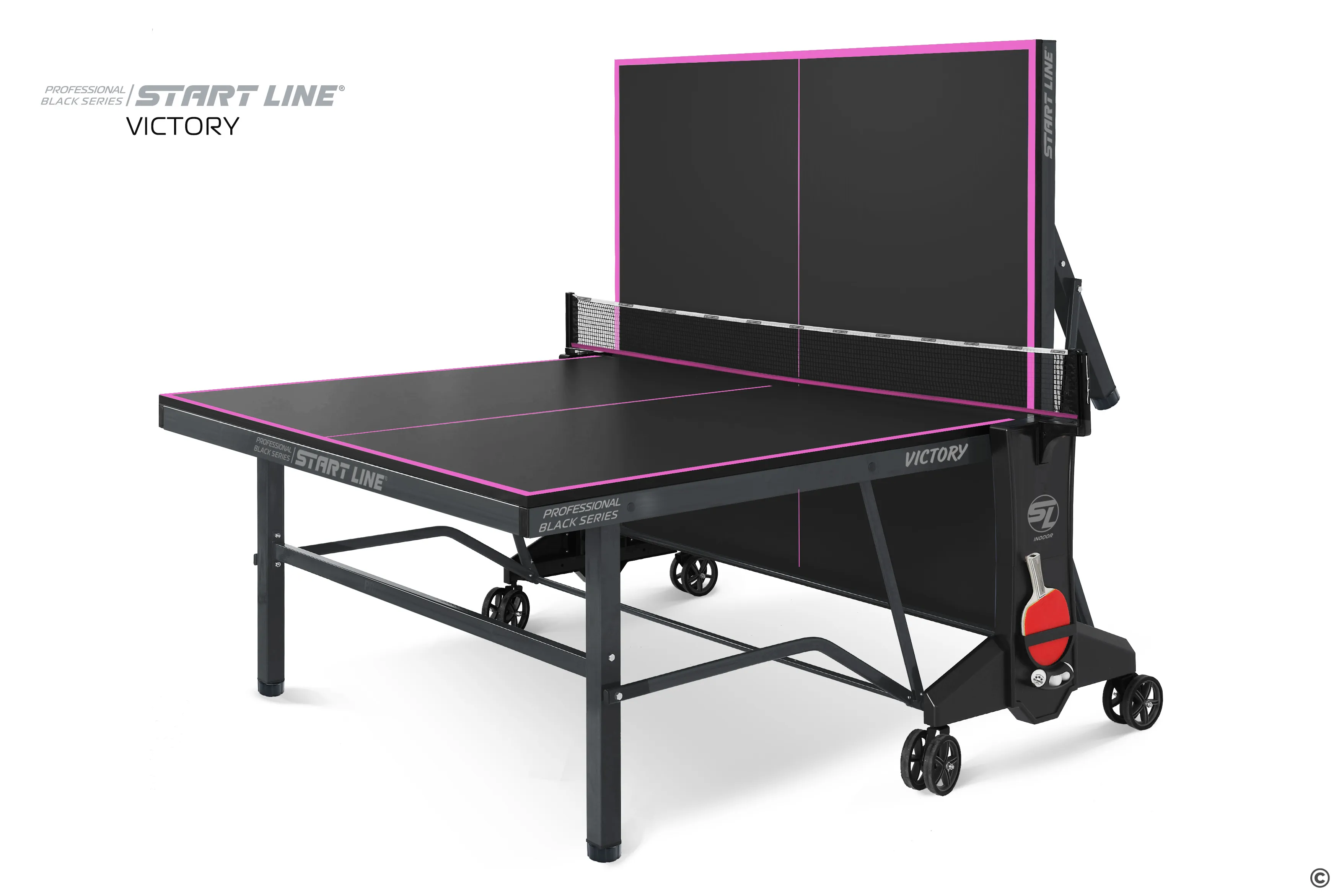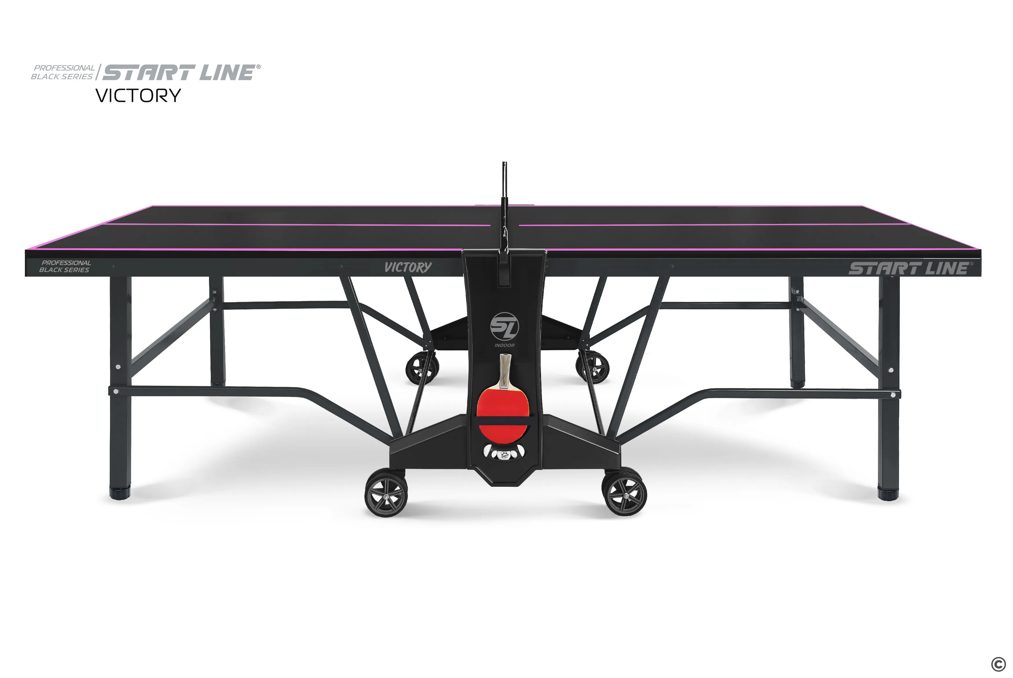 Стол Victory Black имеет непревзойденное качество, а эффектный дизайн, который однозначно выделяют модель из общей линейки теннисного оборудования. Столешница и основание стола выполнены в глубоком черном цвете, который в сочетании с фиолетовой разметкой создает стильный и неповторимый образ теннисного стола.