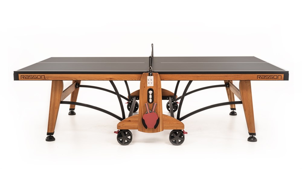 Профессиональный теннисный стол для закрытых помещений «RASSON PREMIUM T03 Indoor» подойдет как для тренировок и проведения соревнований, так и для веселого времяпровождения с близкими, став центром внимания в вашем доме. Современная конструкция из качественных материалов и элегантный дизайн наделяют модель отличными игровыми свойствами и позволяют с уверенностью отнести ее к классу «премиум». Благодаря сочетанию массива вишни и металла модель получилась долговечной и достаточно увесистой – 127 кг. Стол остается статичным даже при интенсивных игровых нагрузках. Игровое поле из МДФ 25 мм имеет идеально ровную антибликовую поверхность и эталонный отскок мяча в каждой своей точке. Четыре опоры из металла оснащены системой регулировки высоты стола. Это позволяет ровно устанавливать игровое оборудование даже на полу с перепадами до 3 см. Модель имеет четыре двойных колеса 160 мм с системой блокировки, которая задает жесткую фиксацию нужного положения во время игры. Безопасная складная система с современным механизмом позволяет быстро убрать стол на хранение. Вы сможете тренироваться в одиночку при одностороннем сложении оборудования. Стол компактен и эргономичен в любом виде. По бокам корпуса «RASSON PREMIUM T03 Indoor» имеет держатели для аксессуаров, где можно расположить по 2 ракетки и по 3 мяча с каждой стороны. В комплект входит профессиональная сетка с системой регулировки натяжения. Притягательная текстура натурального дерева и темный цвет матового игрового поля делают «RASSON PREMIUM T03 Indoor» солидным игровым оборудованием, которое замечательно впишется в любой интерьер. Теннисный стол «RASSON PREMIUM T03 Indoor» полностью соответствует стандартам ITTF.