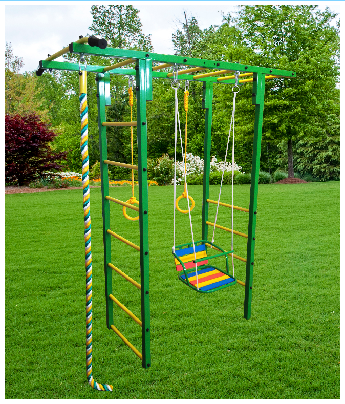 Комплектация ДСКкачели, кольца гимнастические, турник, канат, рукоход, шведская стенка