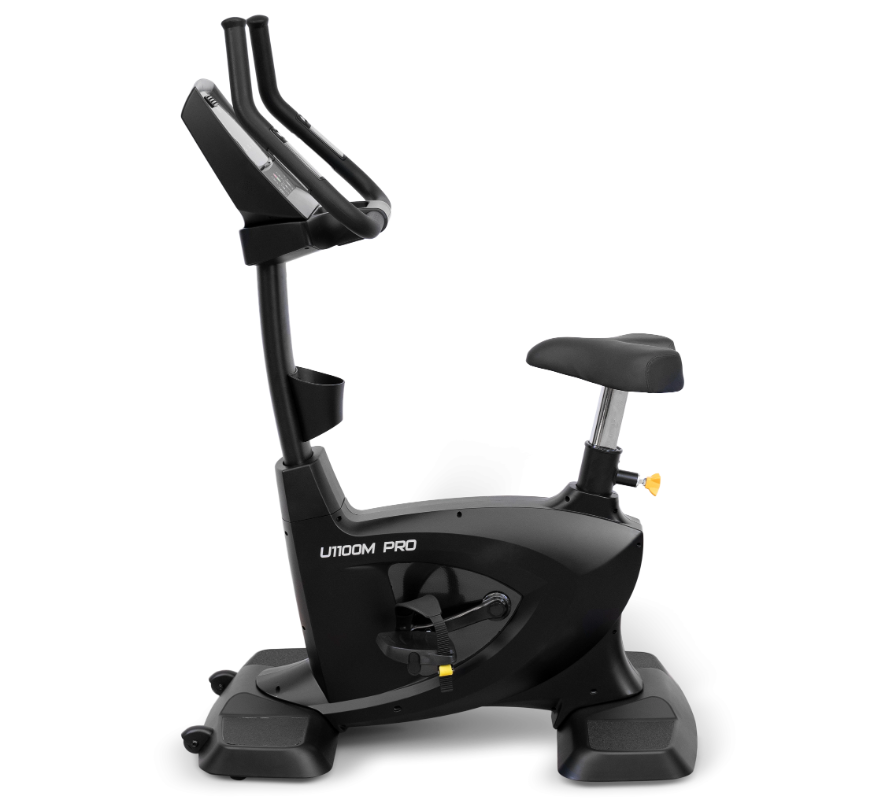 Из дополнительных опций стоит отметить наличие сенсорных датчиков измерения пульса на поручнях в районе консольной части, а также быстрых клавиш регулировки нагрузки. Для бутылки с водой и личных аксессуаров установлен специальный увеличенный отсек на передней стойке тренажера. Переместить U1100M можно благодаря 2-м транспортировочным роликам.