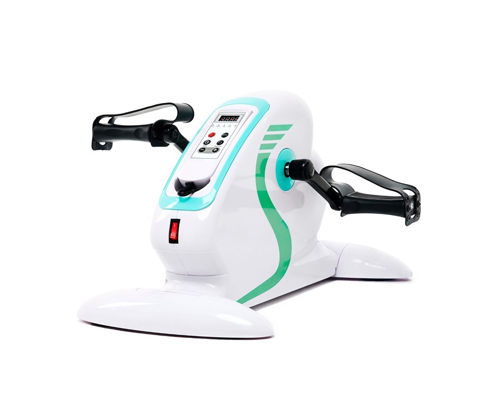 Тренажёр работает от сети 220 В. Самостоятельный ход педалей вперёд и назад помогает в реабилитации и разработке мышц без усиленной нагрузки.